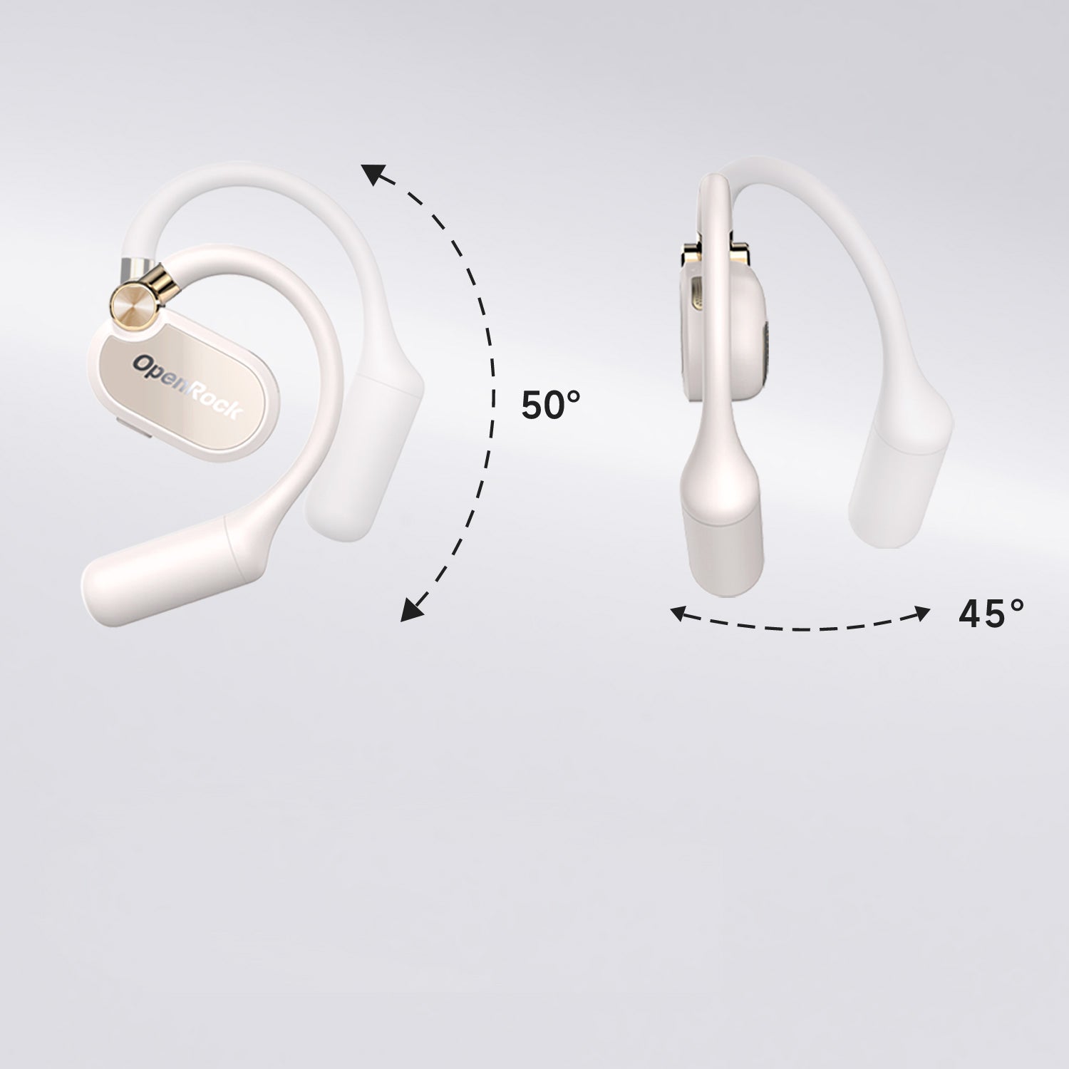 OpenRock's open-ear design minimizes canal pressure compared to plug-in earbuds, enhancing comfort and ear health. Our adjustable hygienic silicone ear hooks adjust to different ear shapes, ensuring a secure and clean fit.